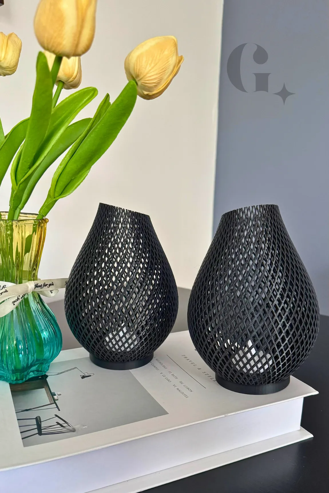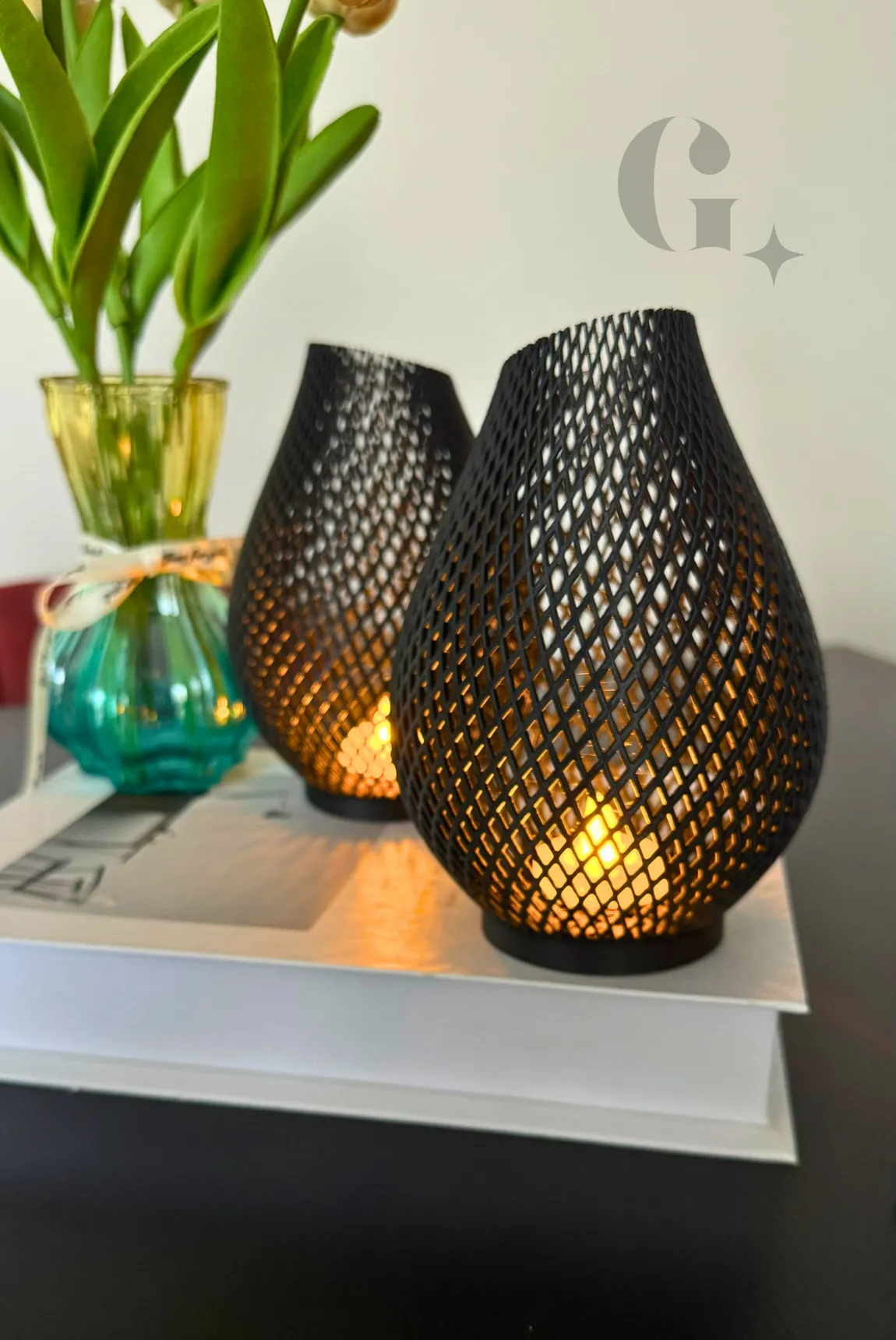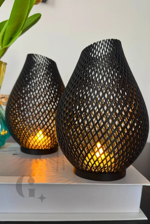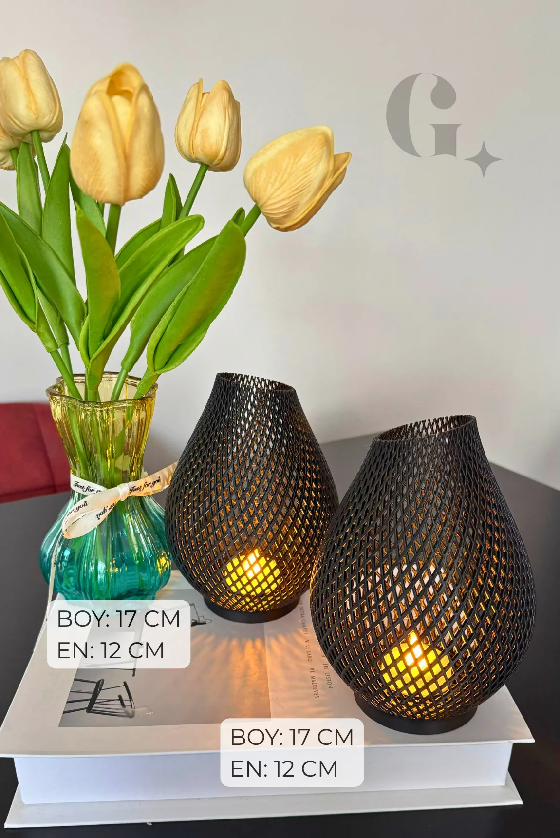 Şık ve modern tasarımıyla öne çıkan dekoratif objemiz aydınlatma özelliği ile birlikte gelir. Ürünümüz doğada çözünen biyopilastik türü PLA’dan üretilmiş olup LED ışık ve pilleri ile birlikte gönderilmektedir. 17 cm yüksekliğinde ve 12 cm genişliğinde olan bu ikili set, sıcak ışık tonlarıyla ortama huzur katarken, estetik bir dokunuş sağlar.