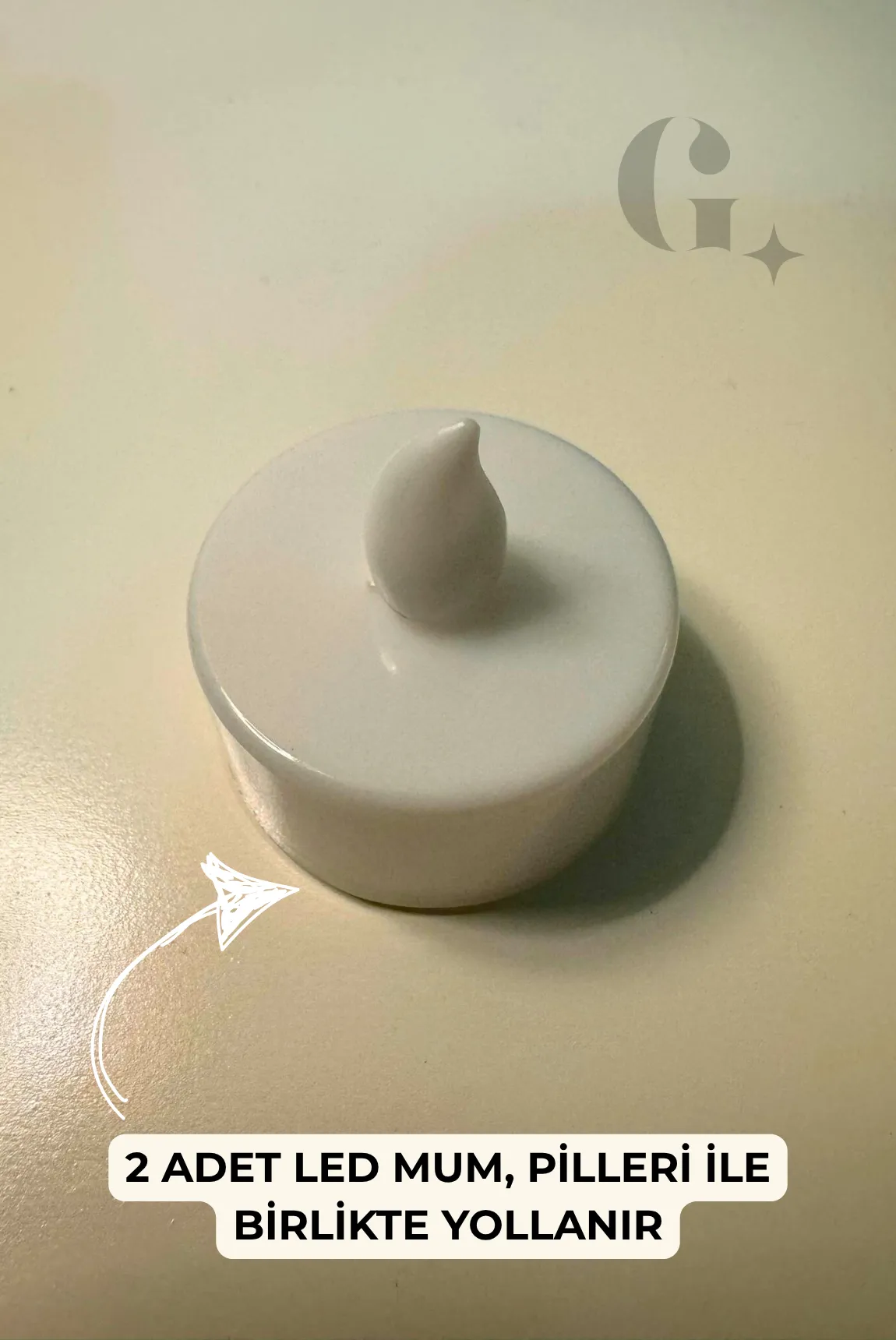 • Ürünümüz görseldeki şekli ile elinize ulaşır. Arzu edilirse demonte edilebilir. Tüm tealight led(37mm çapındaki) ışıklar ile birlikte kullanabilirsiniz.
