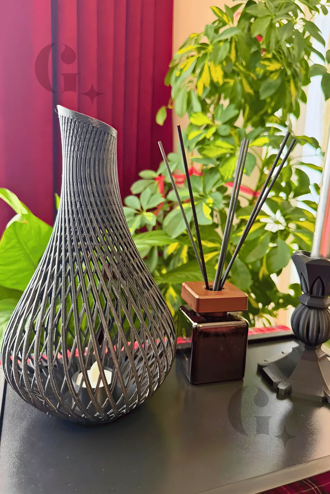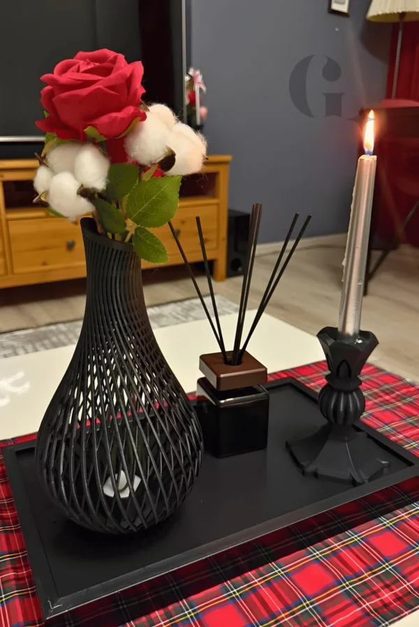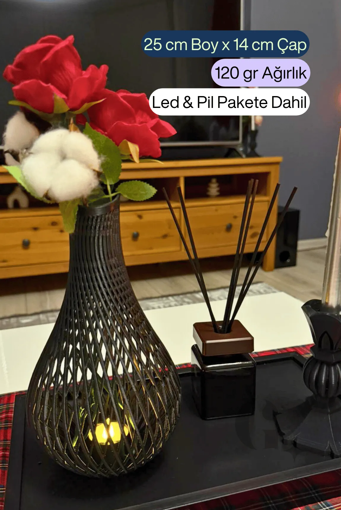 Siyah Mesh Led Aydınlatmalı Vazo, modern tasarımı ve zarif ışık oyunlarıyla yaşam alanlarınıza şıklık katıyor. PLA malzemeden üretilen bu özgün vazo, hem dekoratif bir obje hem de aydınlatma çözümü olarak kullanılabilir. İçerisindeki tel LED sistemi sayesinde sıcak ve hoş bir atmosfer yaratır; evinizde, ofisinizde veya özel etkinliklerde dikkat çekici bir detay olur.
